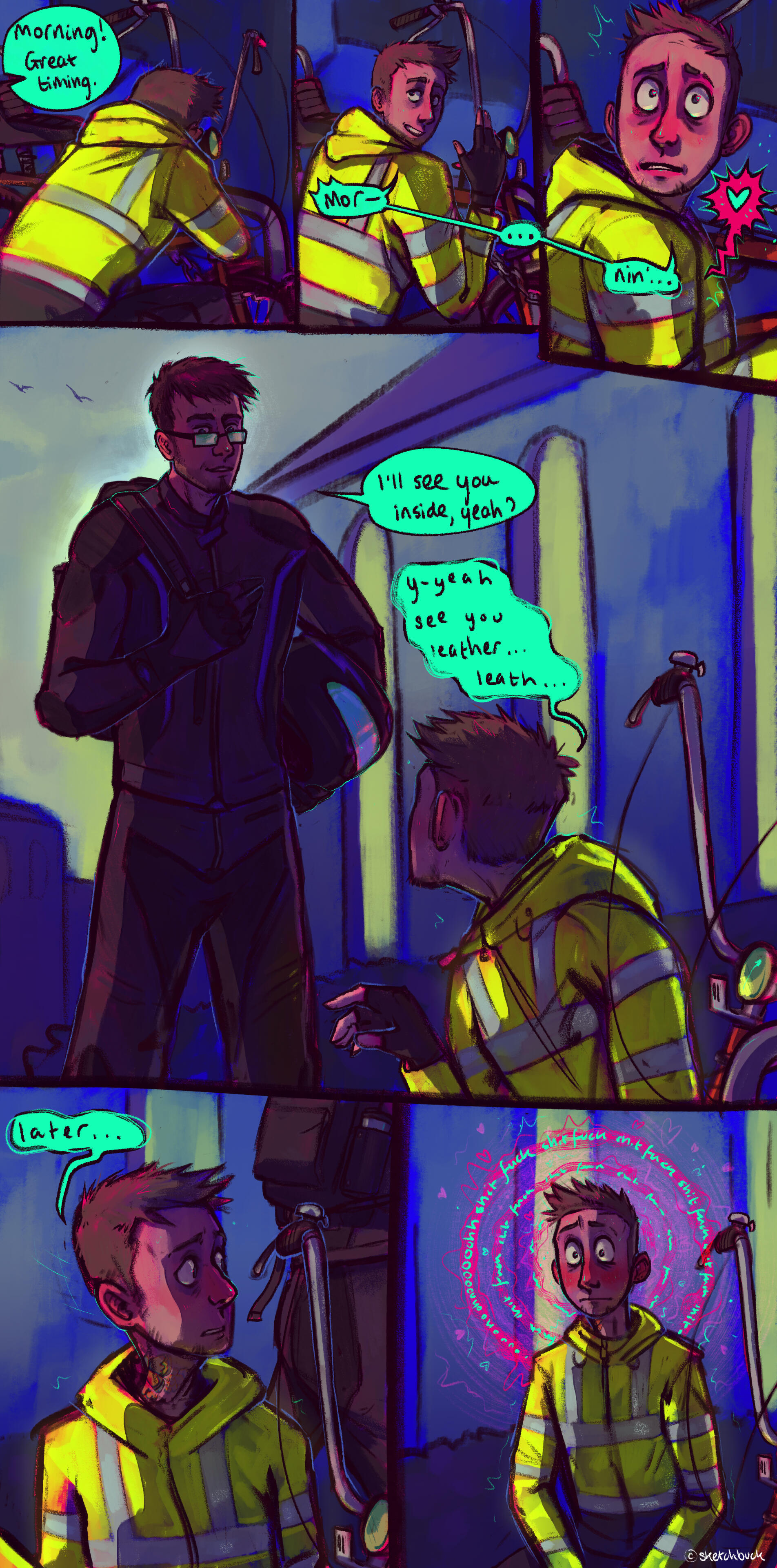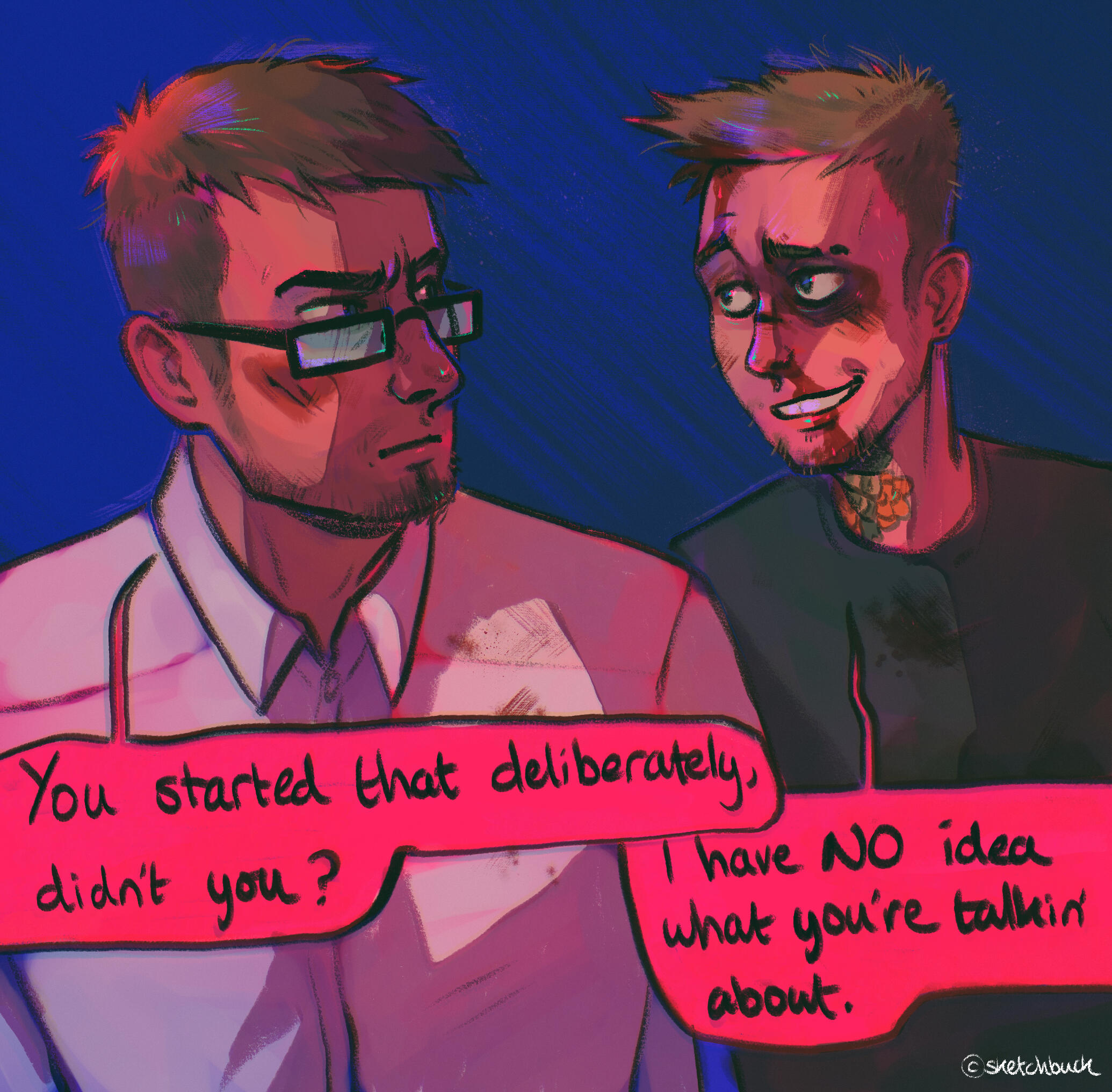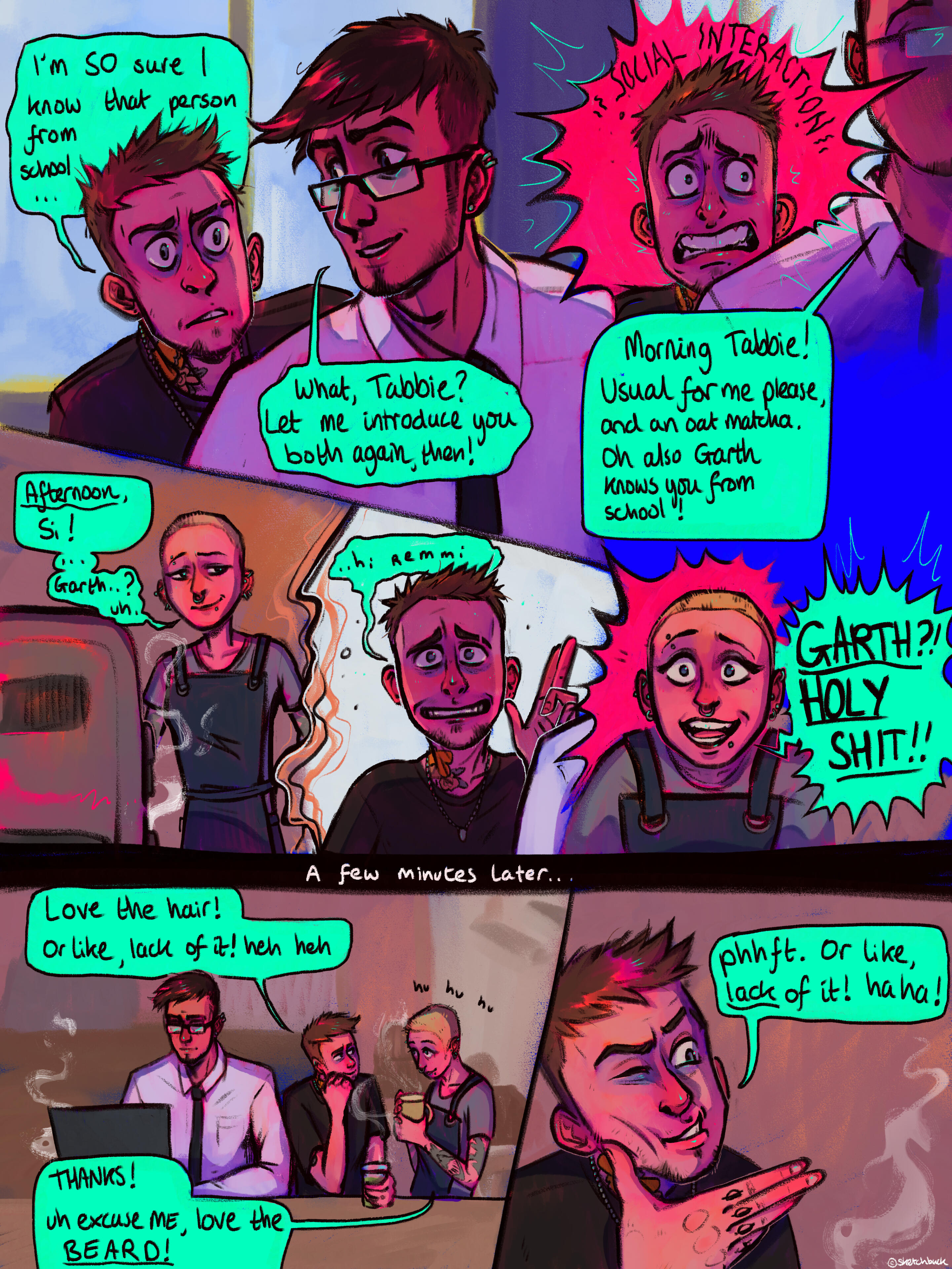 Generally you can assume we are the same, a lot of the time he's just my sandbox for tattoos I have planned for in the future, we're the same thing. Although, in the comic he acts more coldly than I would from his different life experiences.