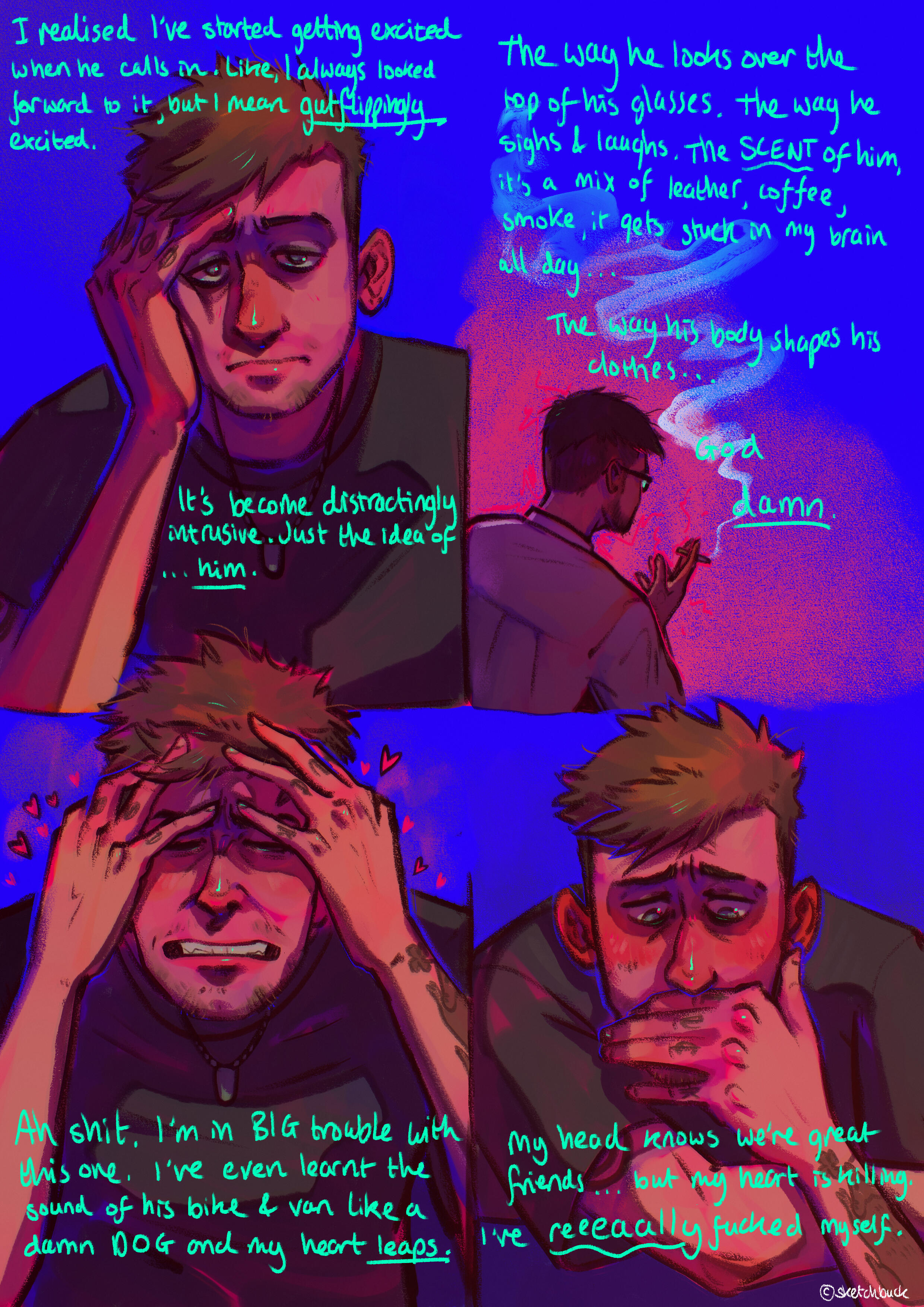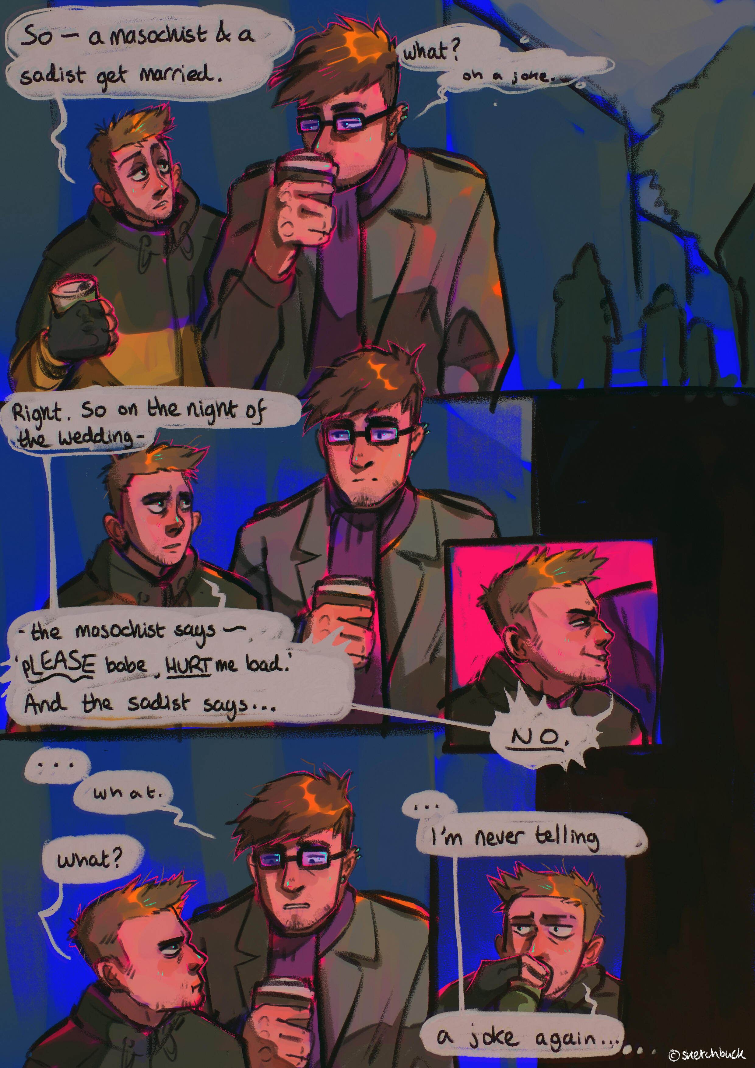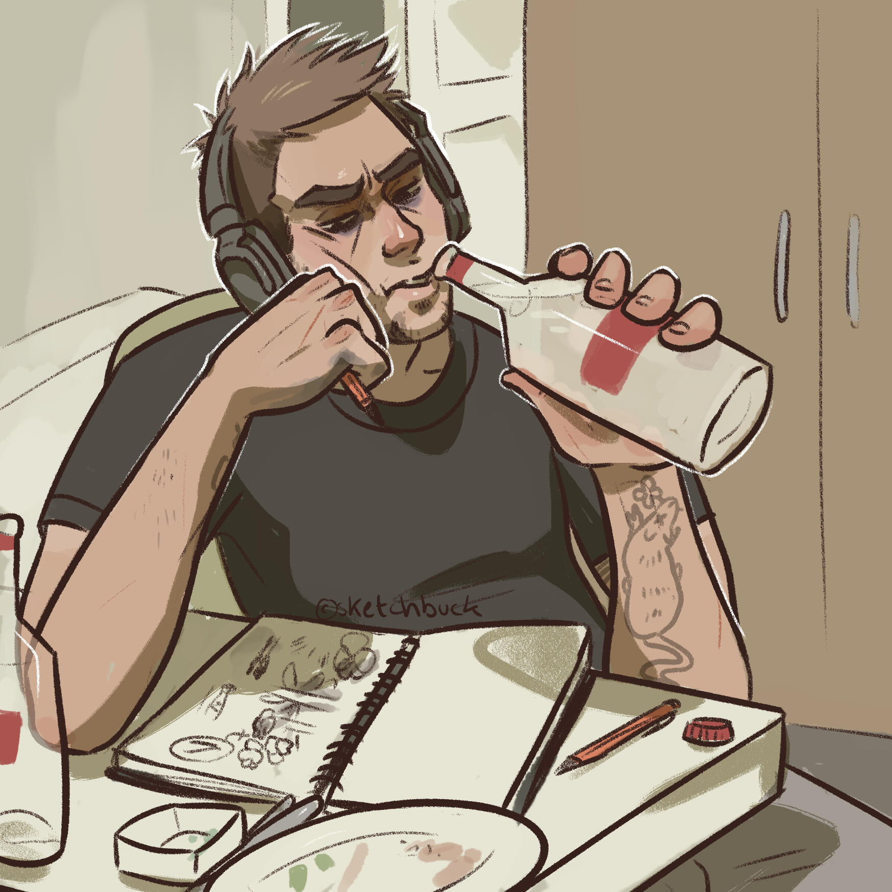 Generally you can assume we are the same, a lot of the time he's just my sandbox for tattoos I have planned for in the future, we're the same thing. Although, in the comic he acts more coldly than I would from his different life experiences.
